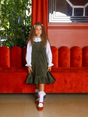 שמלת גולף ופפיון קטיפה- ירוק בקבוק